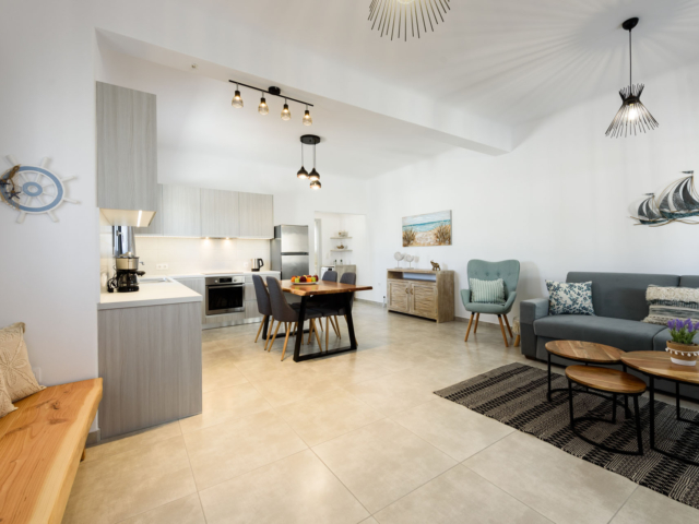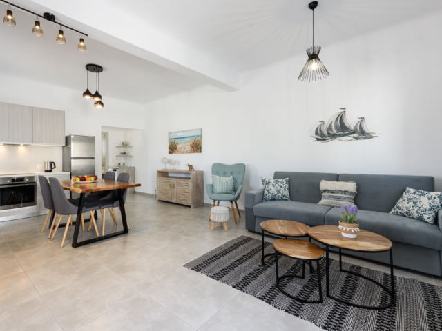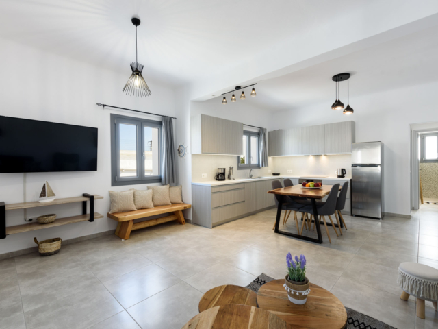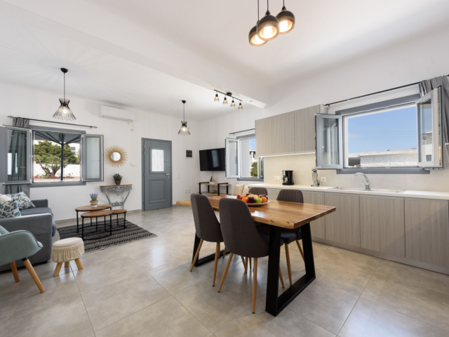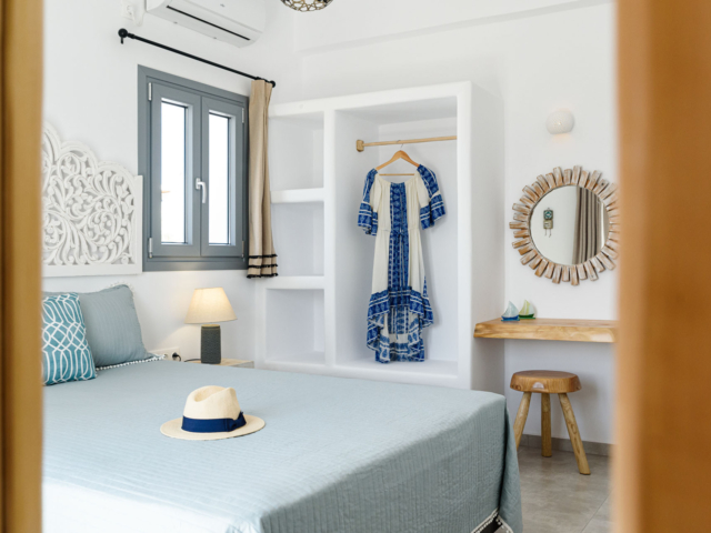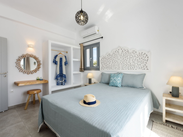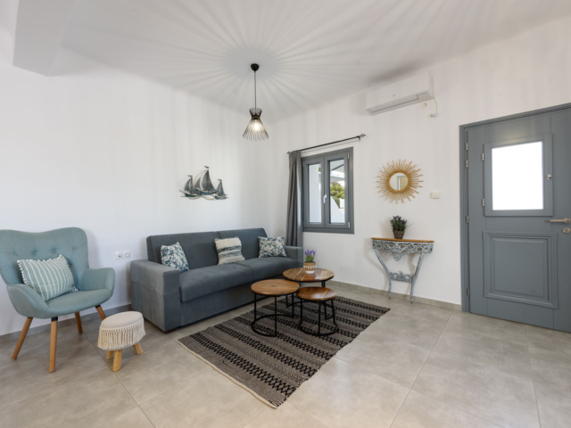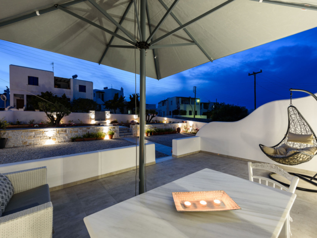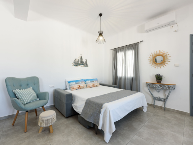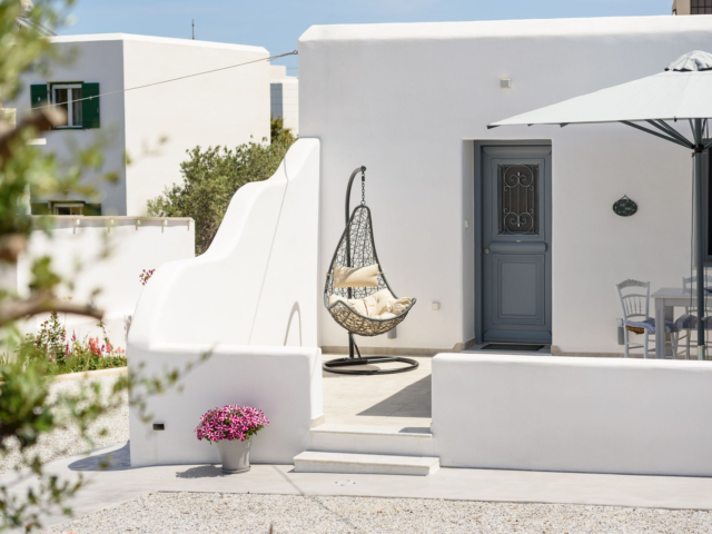 Parian Dream is a fully furnished and equipped house, within walking distance from the centre of Naoussa. The space is decorated in earthy colours combined with the traditional island aesthetics. It consists of a spacious living room and kitchen, bedroom and bathroom. The house also has a large, elegant surrounding area and two shaded courtyards.